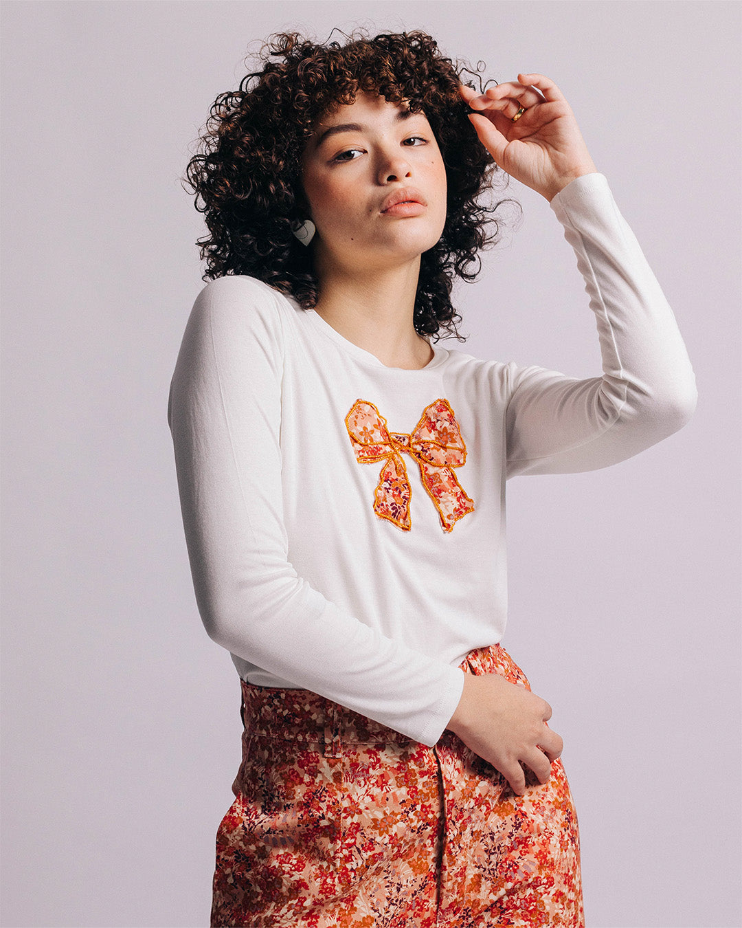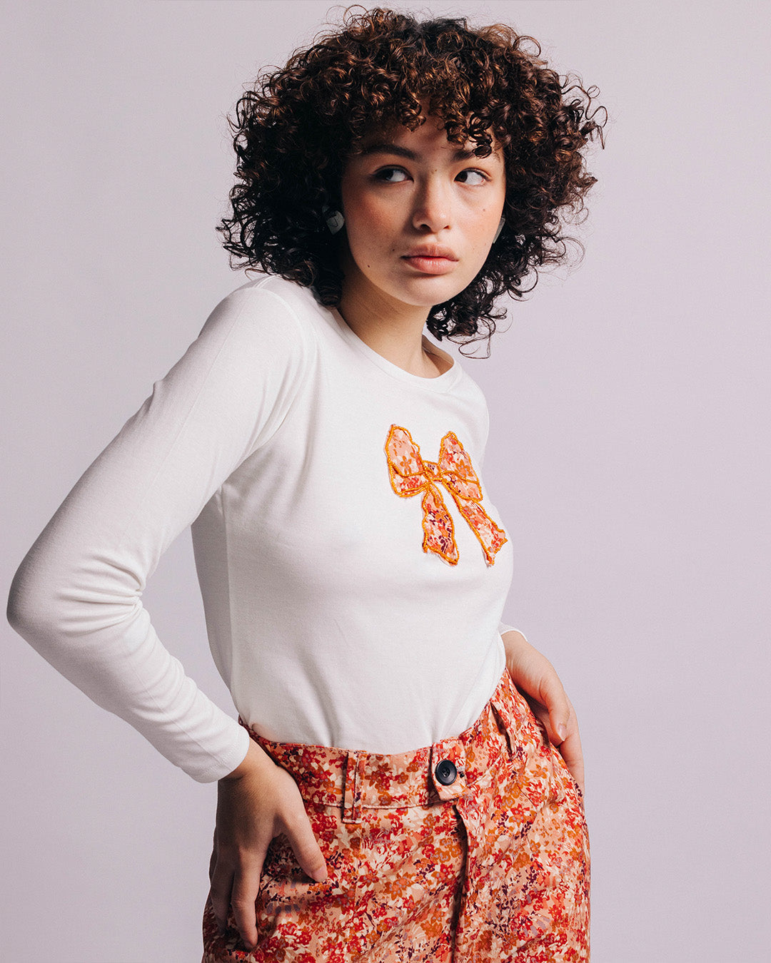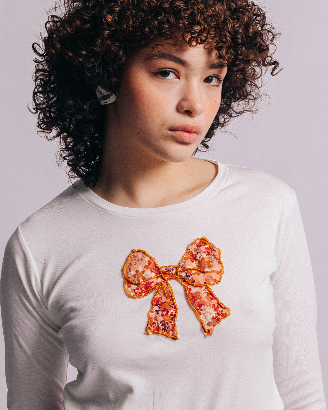 Top blanco de manga larga confeccionado en 100 % algodón pima peruano, reconocido por su suavidad excepcional y durabilidad. Incluye delicados detalles bordados a mano.